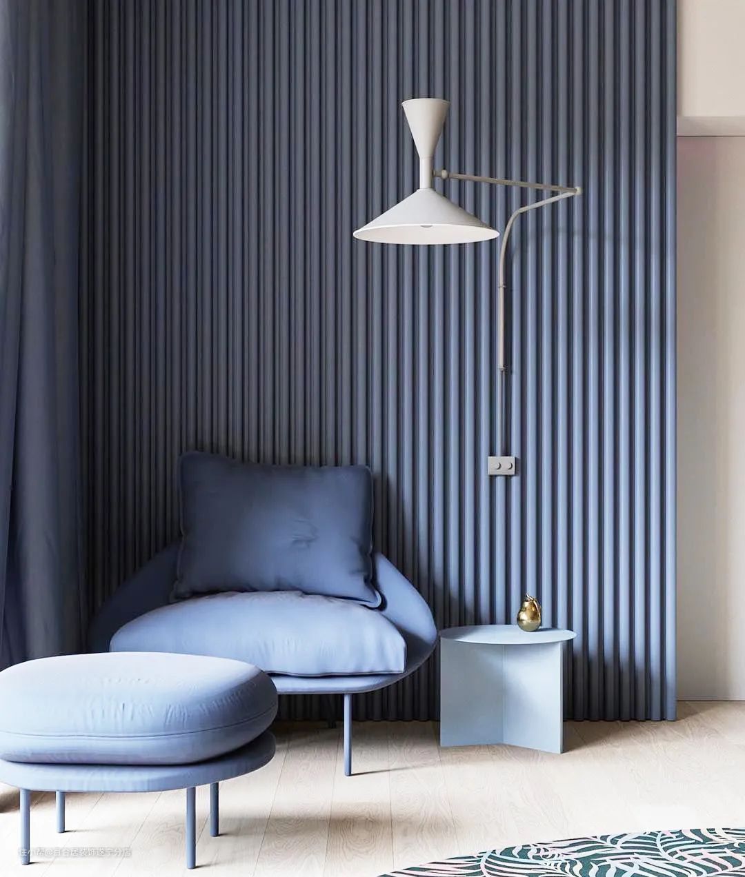 低矮家具离天花板更远,可以制造空间变大的错觉。细腿家具造型简洁纤细,对空间的视觉阻碍小,给人以敞亮之感。