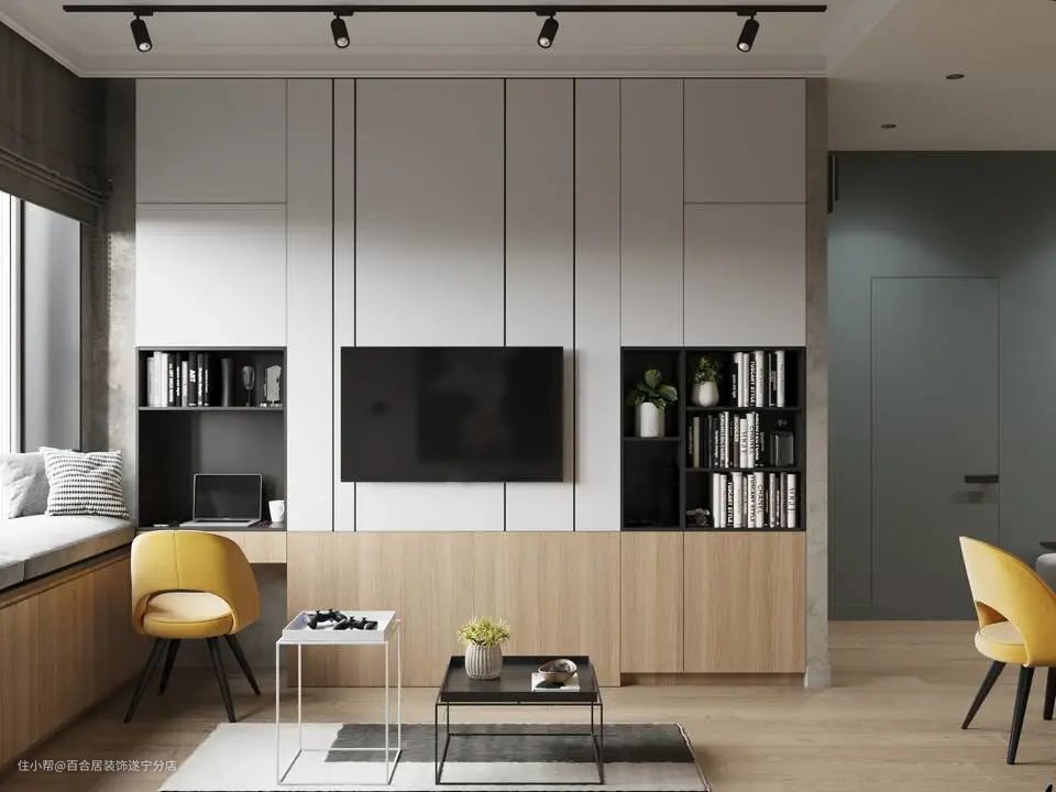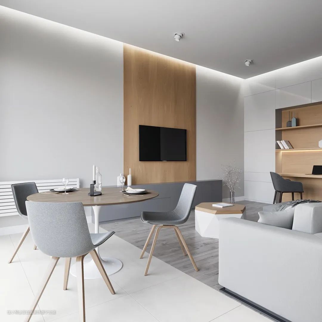 如果本身采光已经不好了,大面积吊顶只会看上去更压抑,所以造型少,轻薄简洁的吊顶更实用耐看。