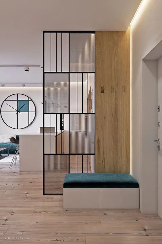 半墙、玻璃、镂空隔断均能起到只引光又保证相对独立空间的效果,客餐厅、主卧衣帽间、主卧卫生间、玄关等均适用。