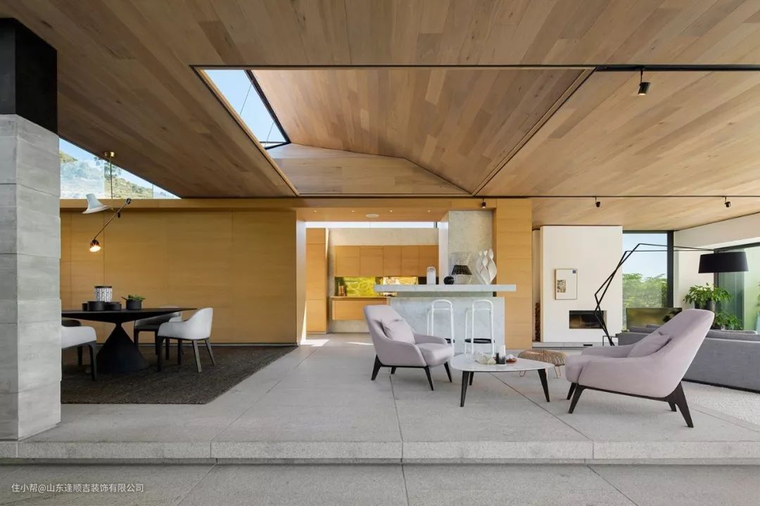 天窗结合条形窗的使用,让空间更显开阔大气,极大地增强了室内采光效果和层次感,造就令人赞叹的室内景观,木质元素的使用赋予室内温润平和。