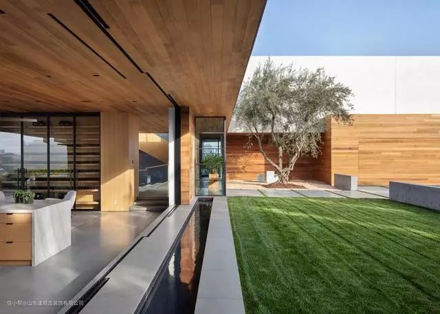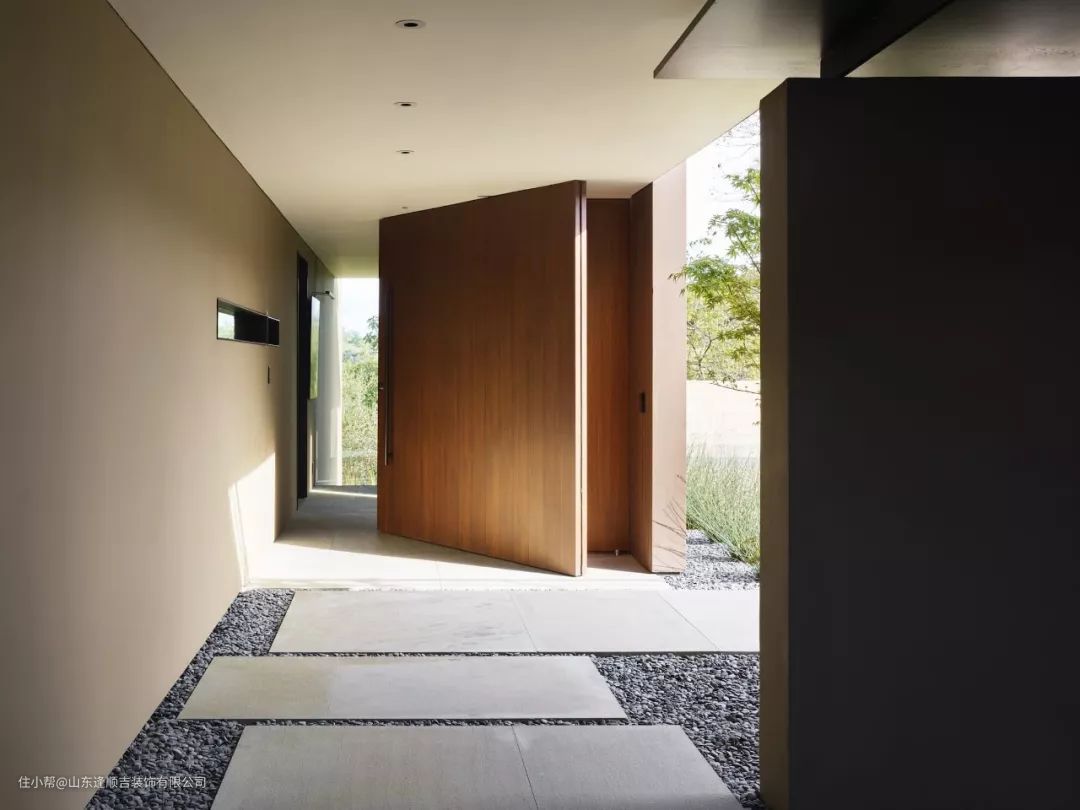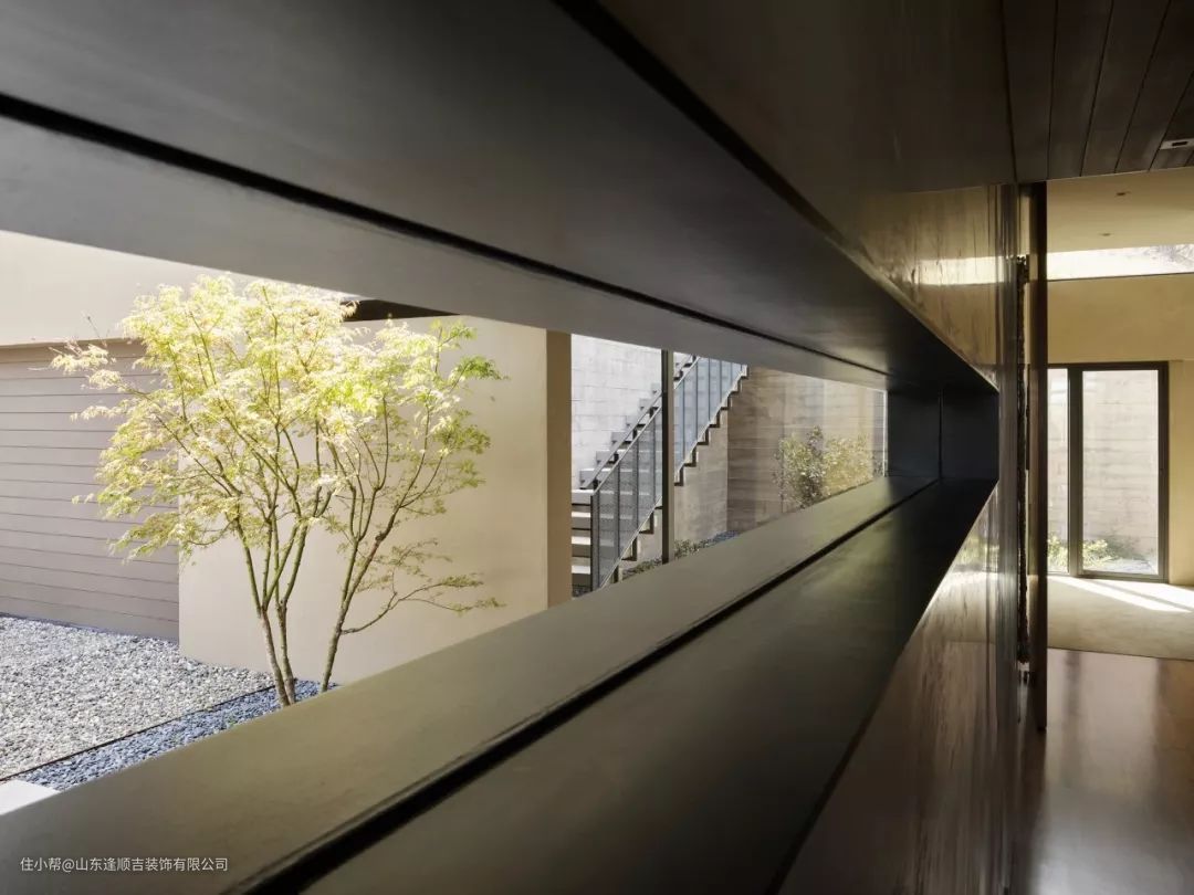 室内留有一条长长的矩形框,框景设计为空间带来通透感,驻足眺望,宁静的庭院透漏着些微的禅意。