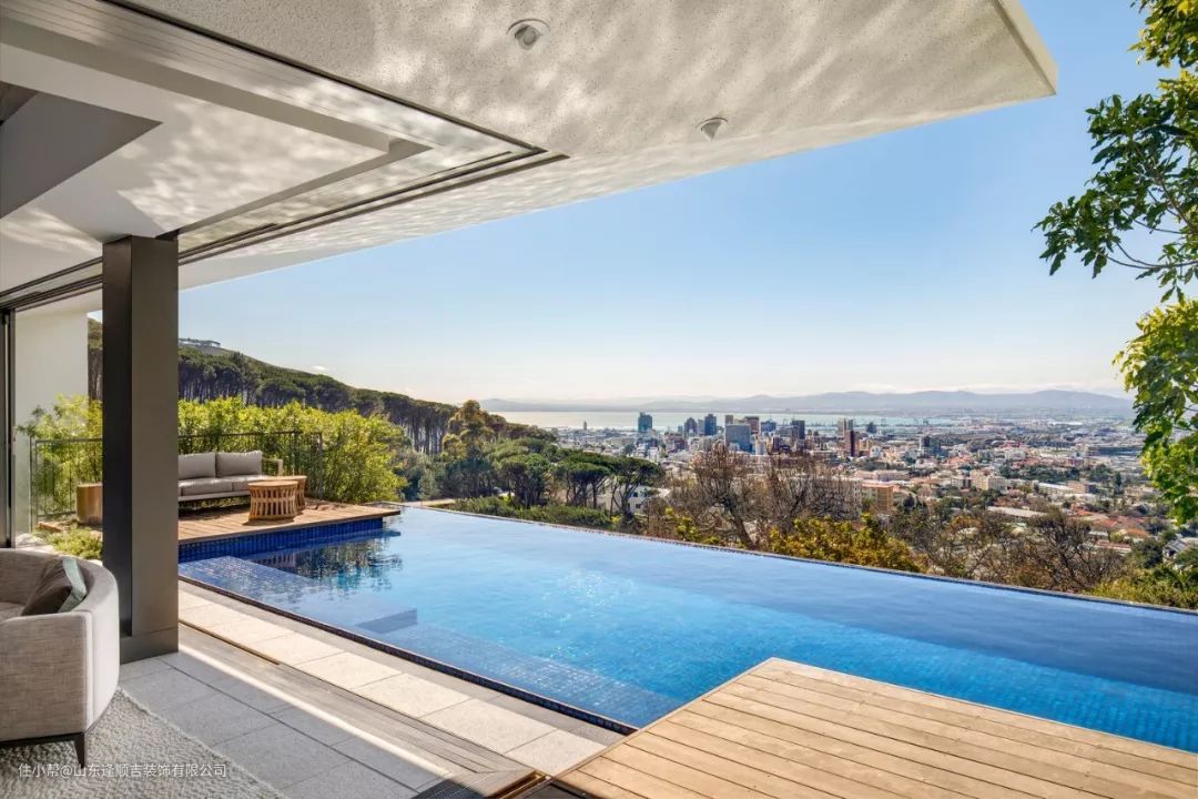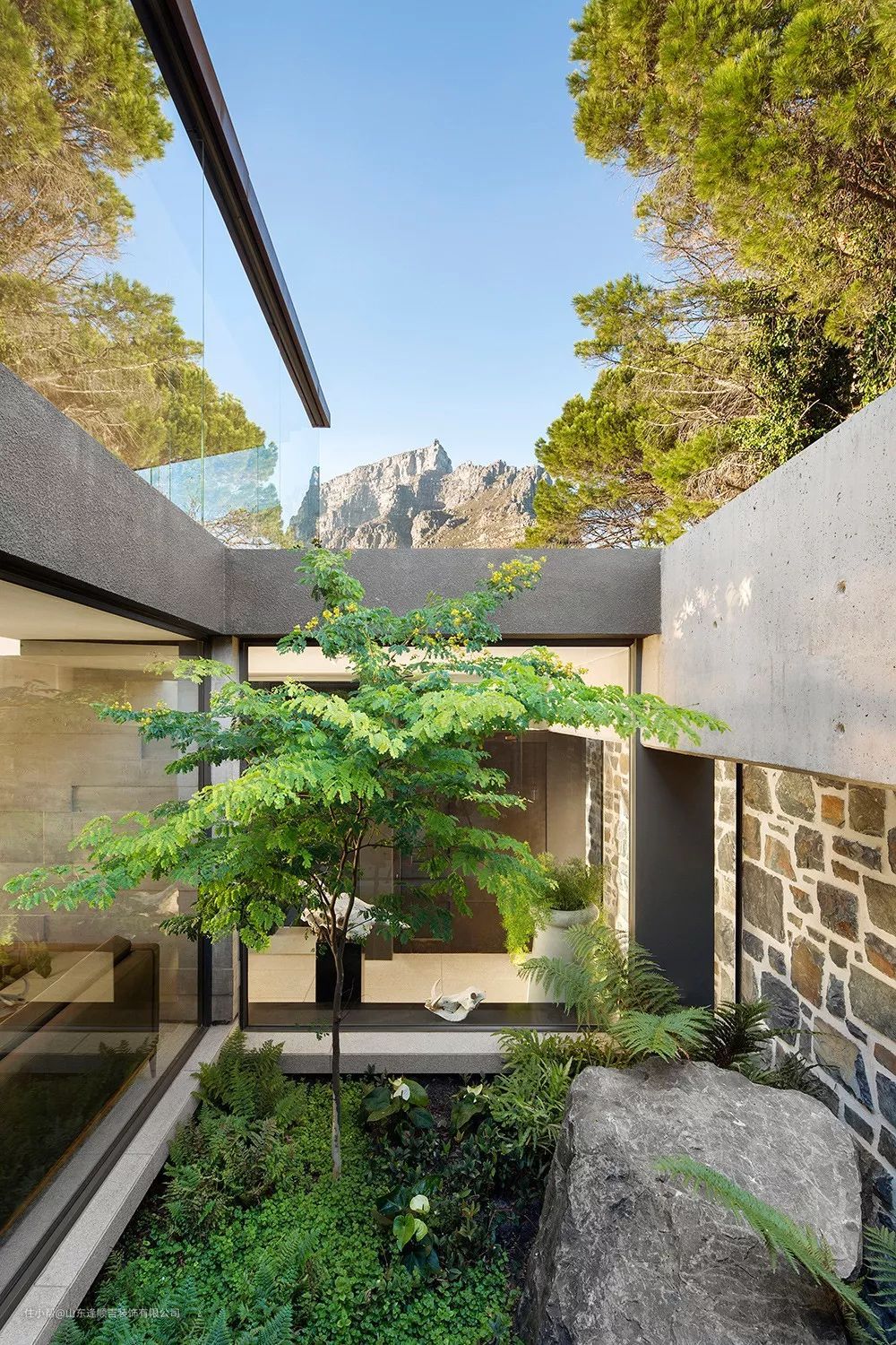 Kloof 119A住宅位于狮头山正下方,可以欣赏到远处的桌山、开普敦和葡萄酒产地的景色。由于房屋的选址在山坡上,设计团队团队便地将坡度元素融入到他们的设计中,倒置的金字塔屋顶让建筑看起来个性十足。