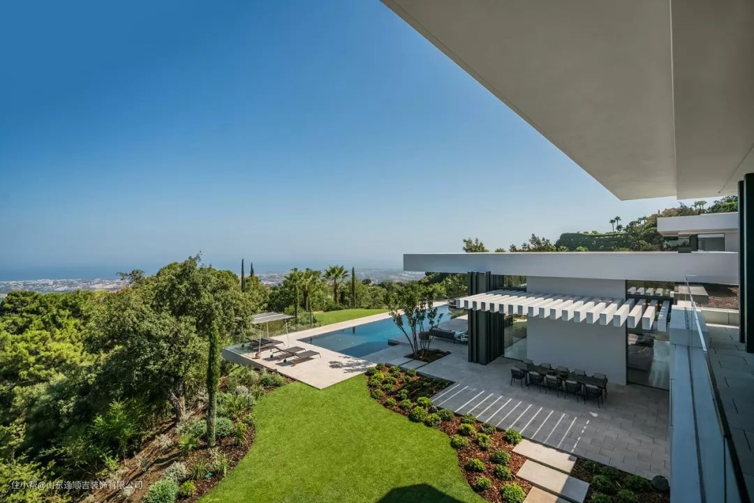这栋位于西班牙马尔韦利亚的豪宅占地面积 13845㎡,利用挑檐结构设计的跳水泳池是项目的一大亮点,在自家都能随时享受跳水的乐趣。