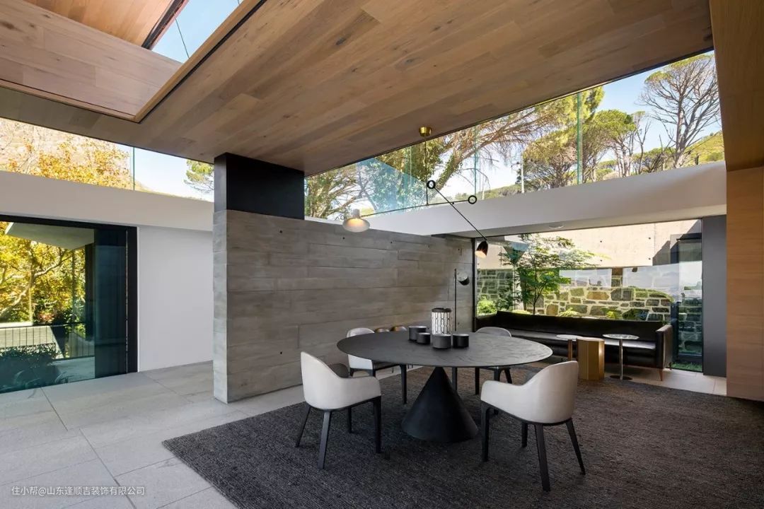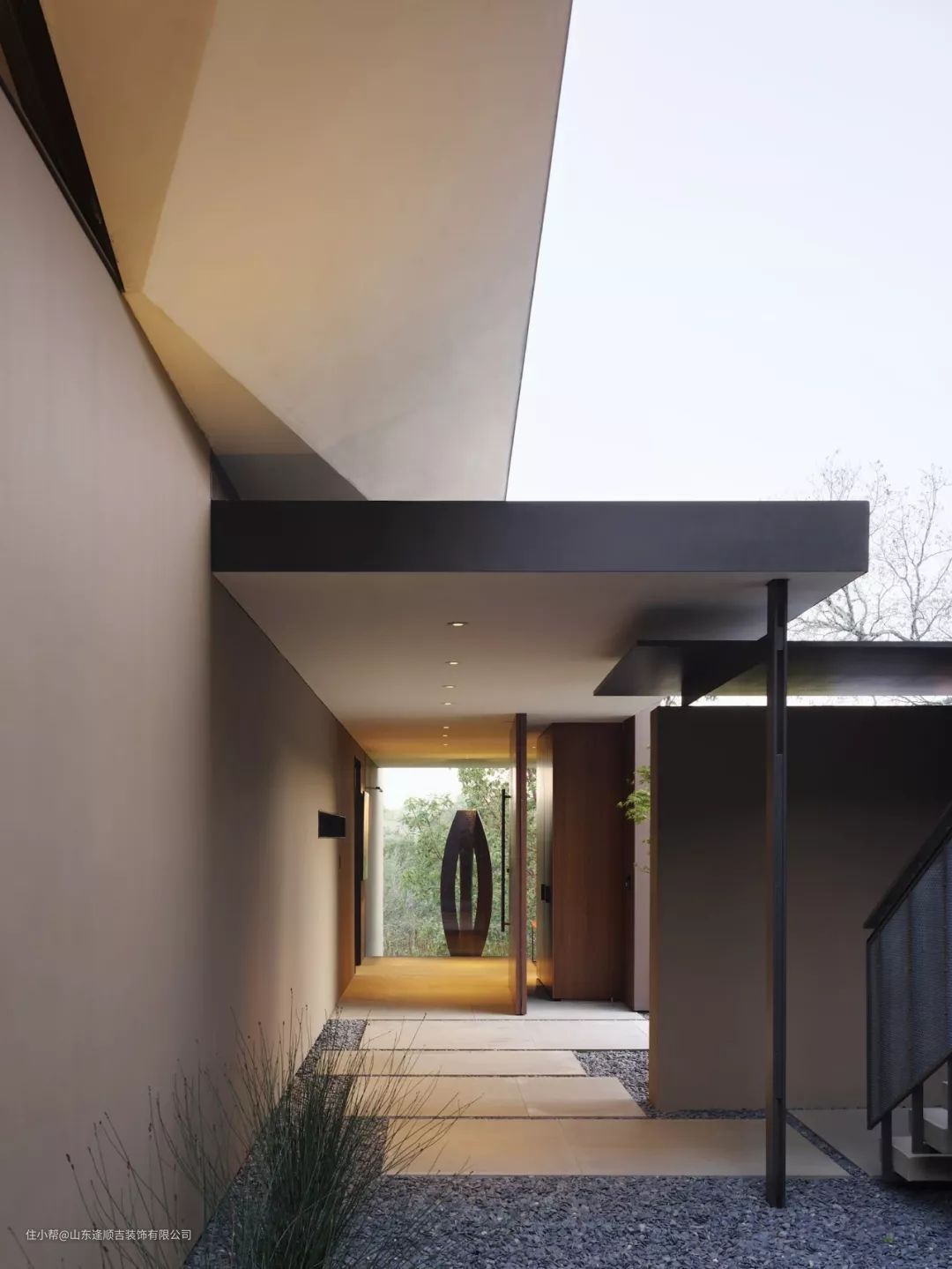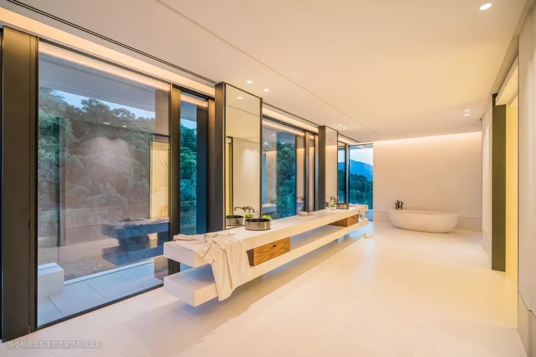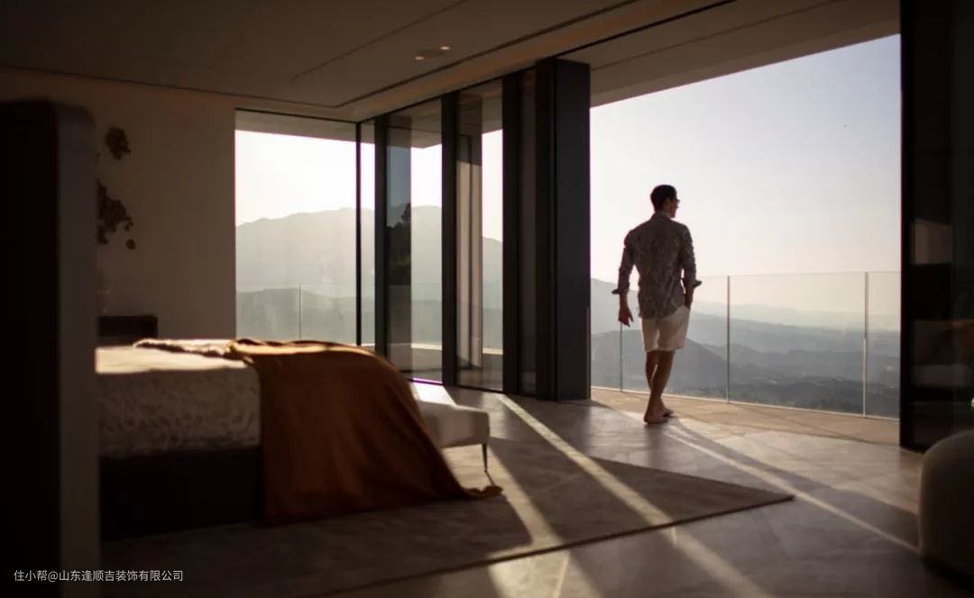 简约的空间线条搭配大面积的玻璃,通过大大的落地窗就可以看到外界自然景观,形成雅致的景观视线。