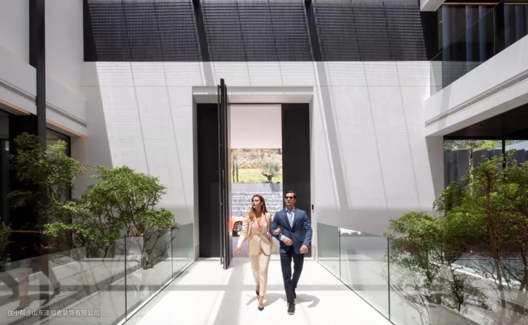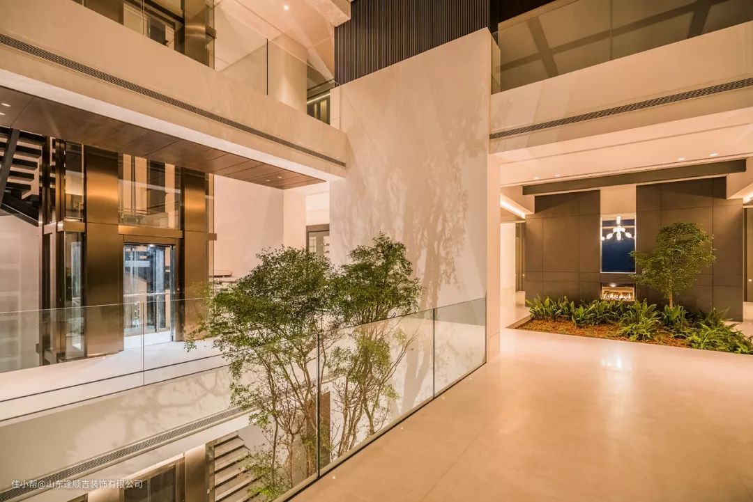 步入大堂,自然光线从顶部缓缓洒下如同身处艺术画廊,两侧的绿植为空间带来生机与活力。