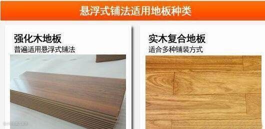 适合悬浮式铺设方法的地板一般为强化木地板和实木复合地板。