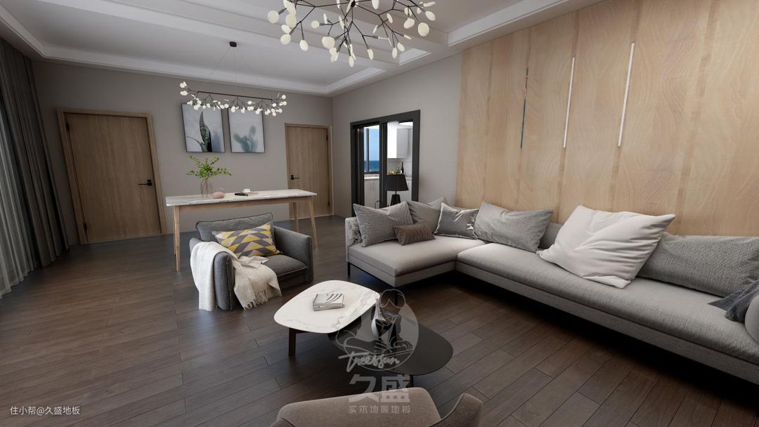 久盛地板通过强大的科研技术将栎木的优质品质与天然的美毫无保留地展现了出来,栎木实木地板既稳重又细腻,天然的山形木纹和良好的性能让空间更加独特,彰显尊贵。