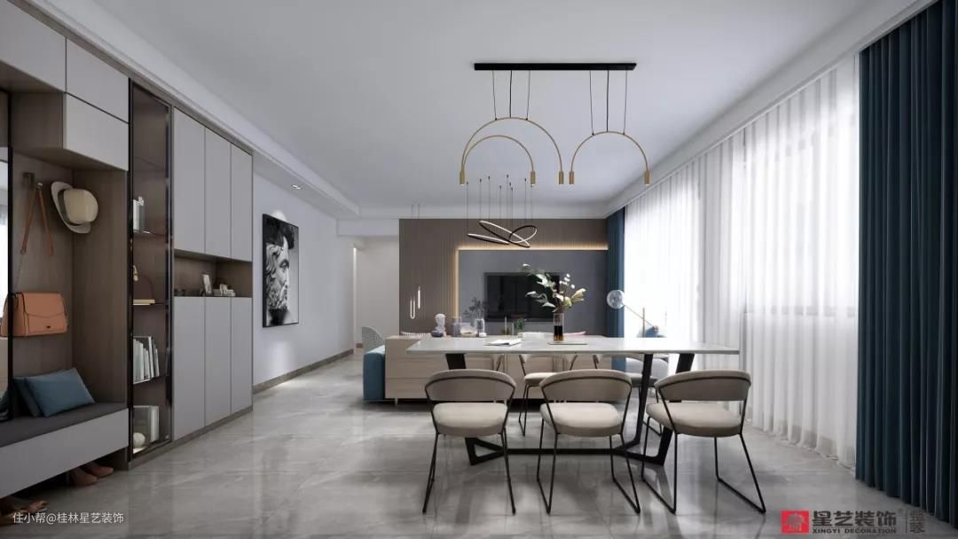 无论从风格、色彩,还是造型设计,客厅与餐厅的设计完美统一,整体空间给人开阔的感觉,带来更加舒适的视觉体验。