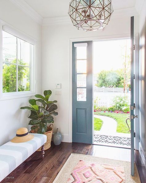 有人不喜欢玄关做太多的柜子,觉得入户的地方,就该清清爽爽的,那些,细脚的矮柜和精致的摆件就是最好的选择了。