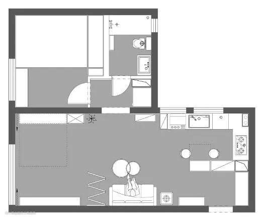 60平米做一居室面积大,但对于一家三口来说却不太够用;做二居室却又偏小,使得客餐厅面积就不够了,那么有没有两全其美的办法呢?今天新新分享的这个案例中,折叠餐桌+隐形床这组搭配,完美的解决了这个问题,非常值得小户型参考,收藏起来吧!