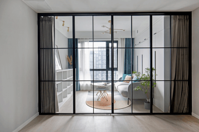 餐厅与客厅中间做了玻璃折叠门,让客厅区域可以变身更加安静的空间。