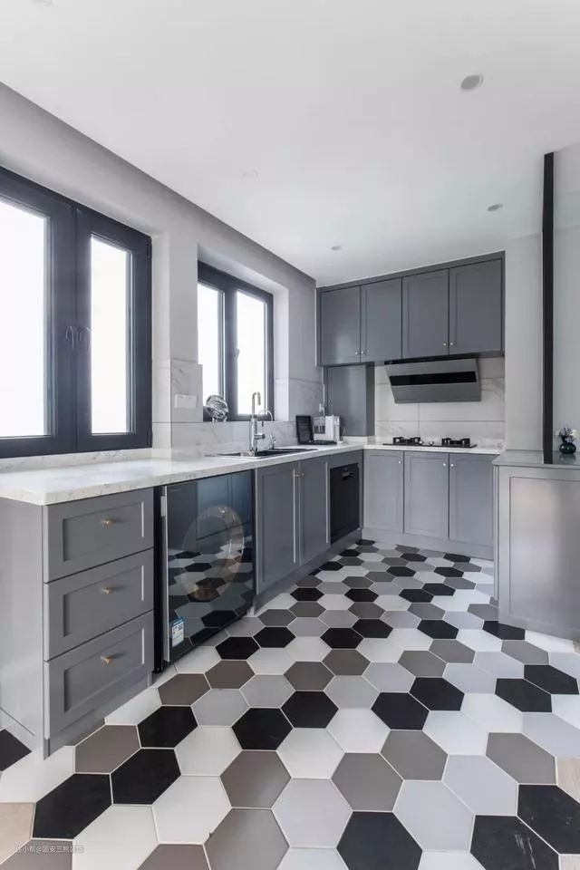 银灰色的鞋柜与橱柜搭配,雅致端庄。