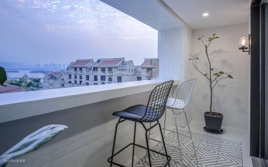 在阳台或者窗户的地方安装吧台台面+椅子即是一个小吧台,视野开阔,功能强大。