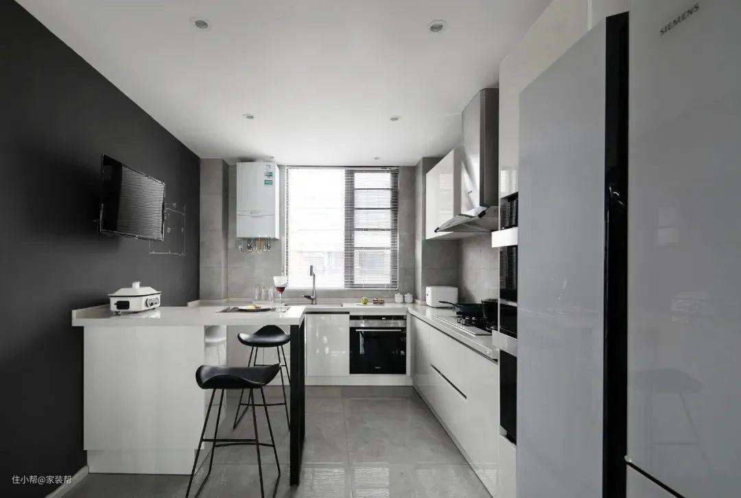 厨房靠近墙面的地方可以设计一个吧台,但要求就是你的厨房要足够大!