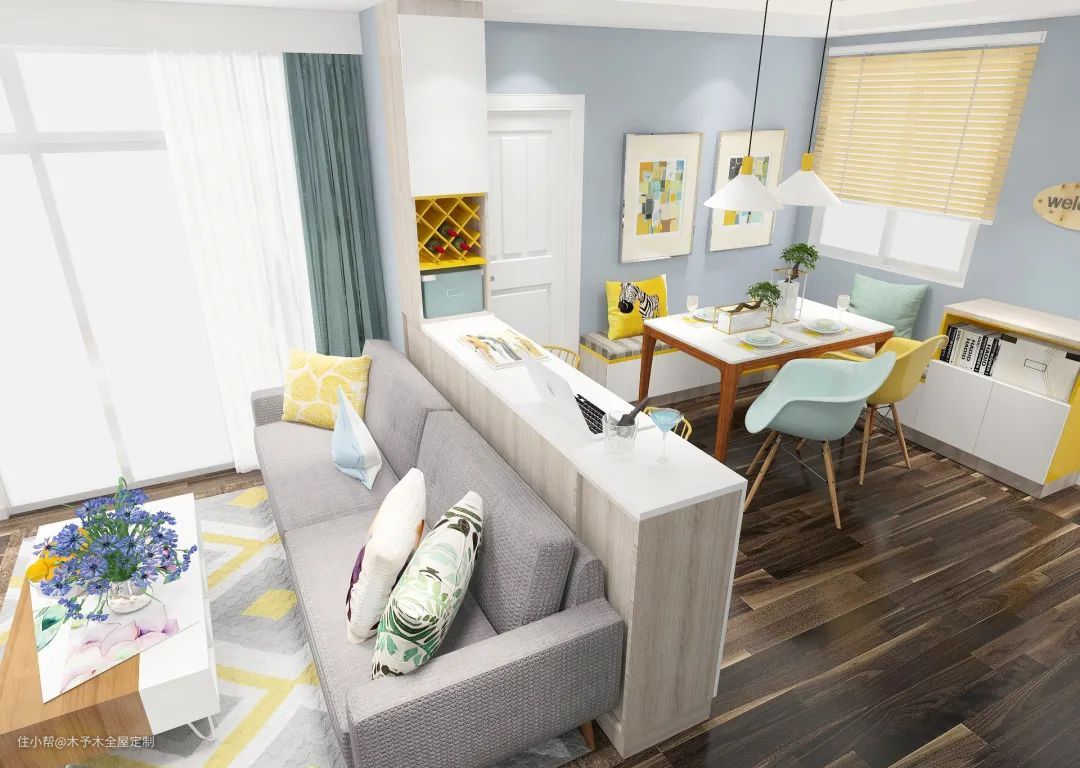 ▲沙发背后做隔断柜,让客厅和餐厅两个空间相互独立开来,还额外增加不少收纳空间,背柜台面也能摆放常用物品,是非常实用的隔断方式。