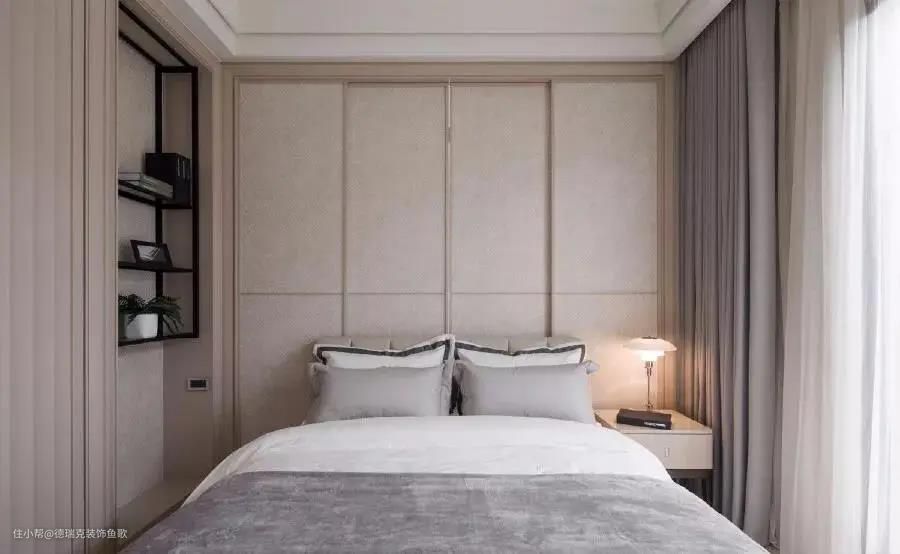 有的卧室靠近房门的地方会有一道横梁,但如果空间允许的话,可以依照横梁的高度,结合吊顶贴墙定制一组衣柜,这样既掩盖了横梁的缺陷,又增加了储物空间。