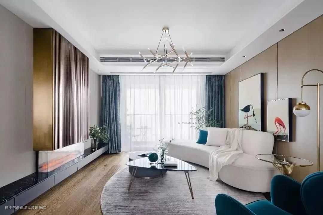 对于预算不高,不想做吊顶也不想做造型的客户,通过灯具来进行装饰改善,就可以弱化横梁给人的压迫感。
