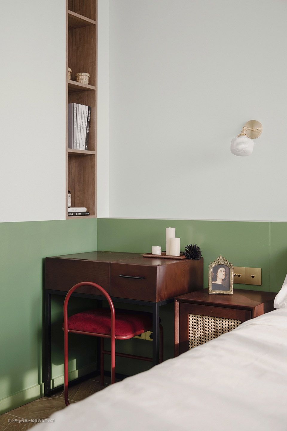 卧室区域是一个独立、私密的系统。其中包含阳台、寝室、衣帽间、洗衣区、卫生间,由南向北层层递进。由于北侧区域不靠窗,全部依靠人工照明,层层叠叠的弧形门洞打破单调乏味的过道体验,创造出丰富的空间层次,同时也限定出不同的功能区域。