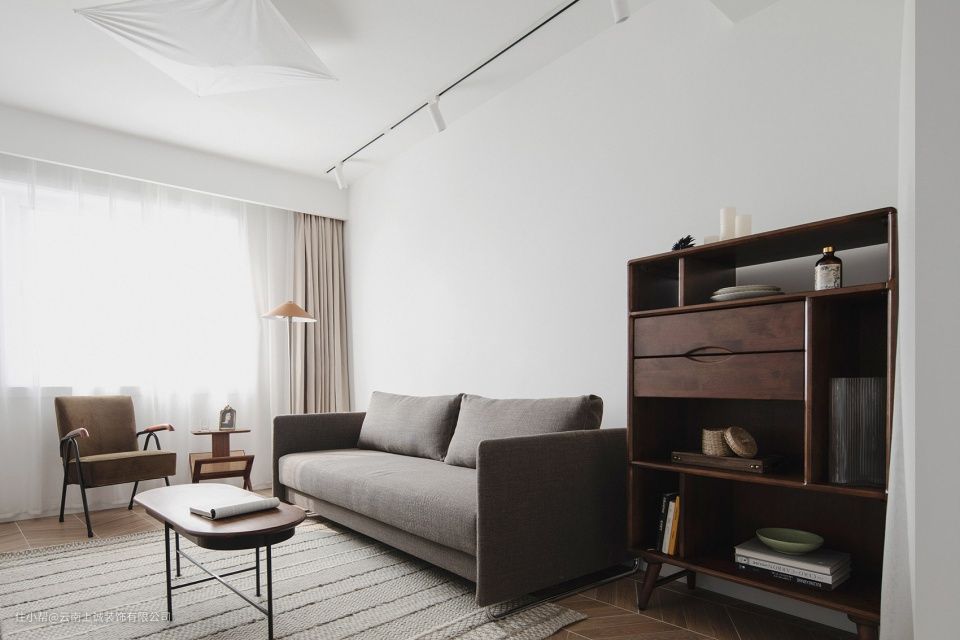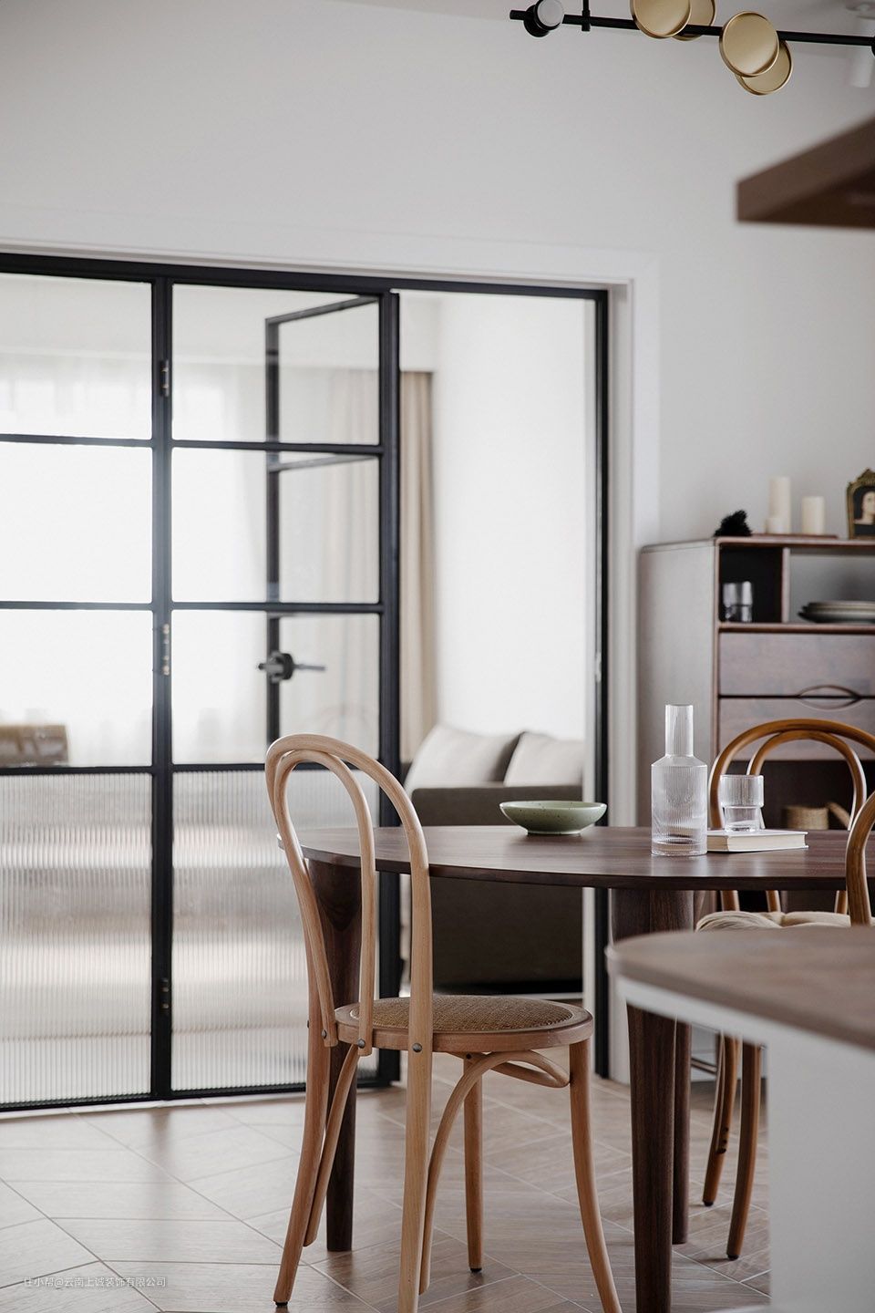 客厅原先占据整个中部区域。由于走道开口以及卧室门位置的客厅空间被人行流线切碎,失去了让人长时间停留的稳定性。久而久之起居室变成家人堆放杂物的场所。设计师将原本的客厅一分为二。东侧并入卧室,西侧与原本为卧室的南侧房间联动使用。通过玻璃折叠门实现功能的灵活变化。当折叠门关闭后,南侧的空间可作为临时客房使用。