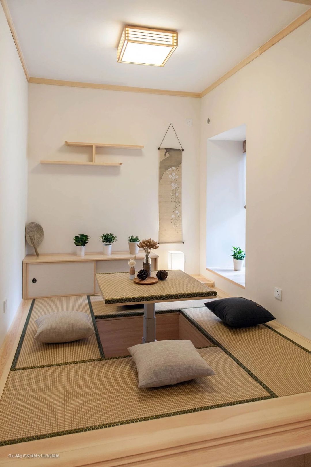 如果房间的面积比较小巧,那么榻榻米与小茶桌的组合就是再妙不过了。席地而坐享受难得的茗茶时光,真是想想就舌下生津。