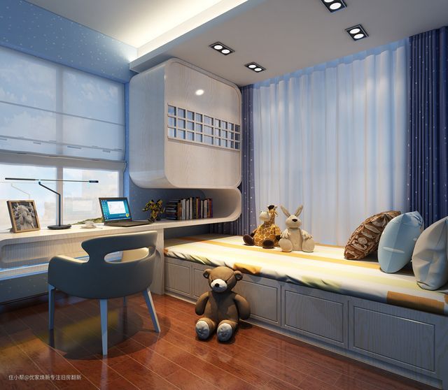 同时为了小孩子们的安全起见,所有的书桌柜子等有棱角的物体,都可以提前打磨做成圆角的设计。