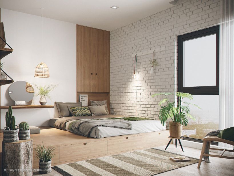 高度较低的榻榻米,保证了孩子们的安全,而铺满整个房间的榻榻米,拓宽了床的范围,让小孩子倍感自由自在。