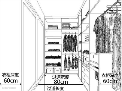 如果柜深按60cm算,过道至少也得60cm才能保证一个舒适的步入空间,所以宽度不能小于120CM,如果按2.5米长来算,那至少需要3㎡左右的空间