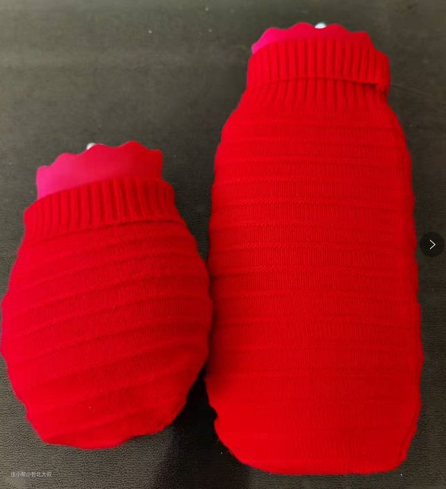 5、暖手宝。不管是水的还是电的,只要是质量过关,安全就好。我买的是一大一小,硅胶材质的暖手宝,它的前身就是小时候用的大的搪瓷的那种。这款大的可以用来热敷肚子或者腰部。小的可以放在大衣兜里,早上送娃或者等车都能用的上。为了安全起见,可以里边加满热水,达到取暖的作用。也可以像我家这样使用,接满凉水,放在微波炉里加热1分半,出来一样的效果。硅胶制品用的久了会有磨损或者脏的发亮的情况,我家这款还搭配个毛线外套,每次清洗外套就行了。但有外套会多少影响它的散热温度,这个根据自己的情况取舍哈。