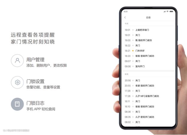 指纹、密码(长期、临时、一次性)、NFC、小米手环均可开门,多种方式,多种保障;