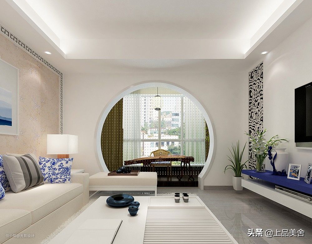 本案是一套新中式风格设计,设计主题来源于一首脍炙人口的流行歌曲《青花瓷》,并用此作为主题。房子的实际面积是110个平方,三房两厅的 格局,坐标地点在厦门,一座可以看海的城市。