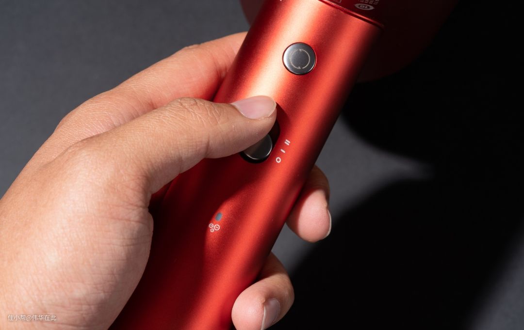 它的金属触摸按键与珠光珊瑚锦鲤色的机身搭配十分完美,抓握也是最佳位置,操作顺手舒服,长时间吹发也不会有抓握不试的感觉。