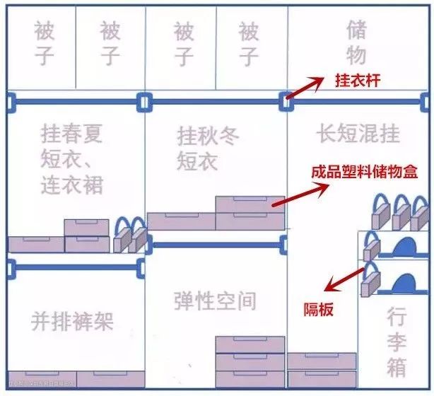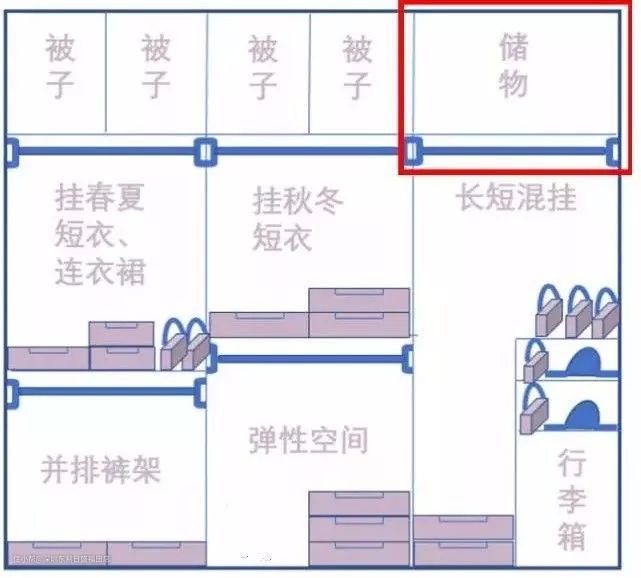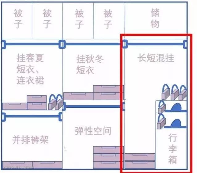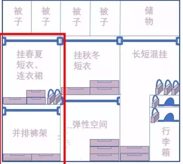 先给大家总结一下,一个布局合理的衣柜内部格局一定是: