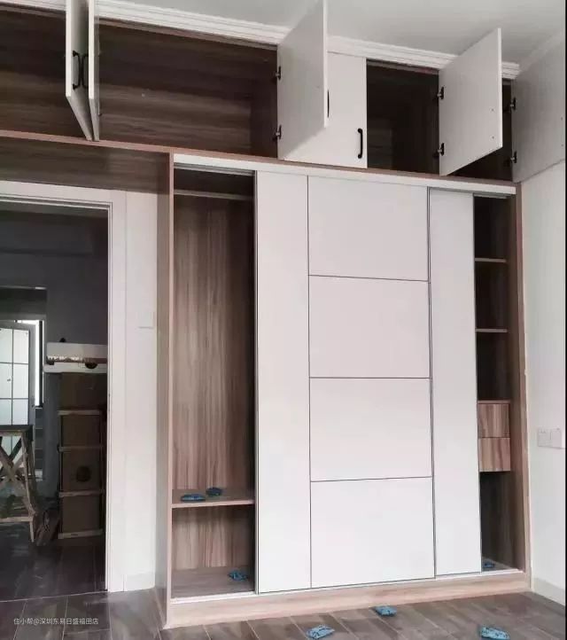 高隔板:隔板做在衣柜的最顶部,专门用来存储被子,格子的高度要根据衣柜的整体高度来定,常见的尺寸是40cm~60cm。