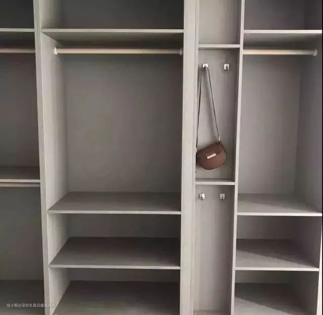 低隔板:低隔板做在衣柜的底部位置,专门储藏帽子和包包之类的,建议可以根据包的大小定制不一样的隔板格,减少垂直空间的浪费。