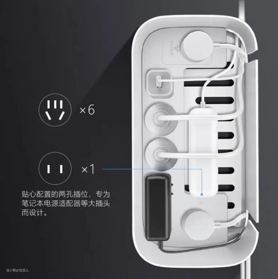 很多时候电线在源头处就已经纠缠不清了,电线收纳盒的作用就是从源头上集中整理,将插座和各种电线都装进去。