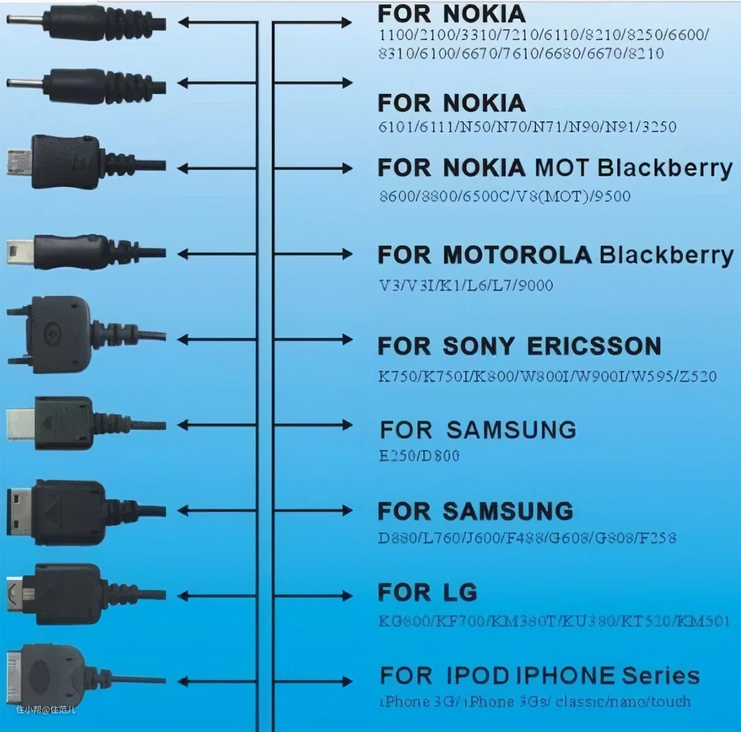 这三种类型数据线基本上能满足大多电子设备,充电或数据传输不成问题,不像年代机真·一机一线傻傻分不清。