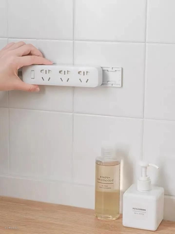 排插固定器买便宜的就行一样好用,都是分两片,一片粘在墙上或桌子背面,另一片粘到插排背面。