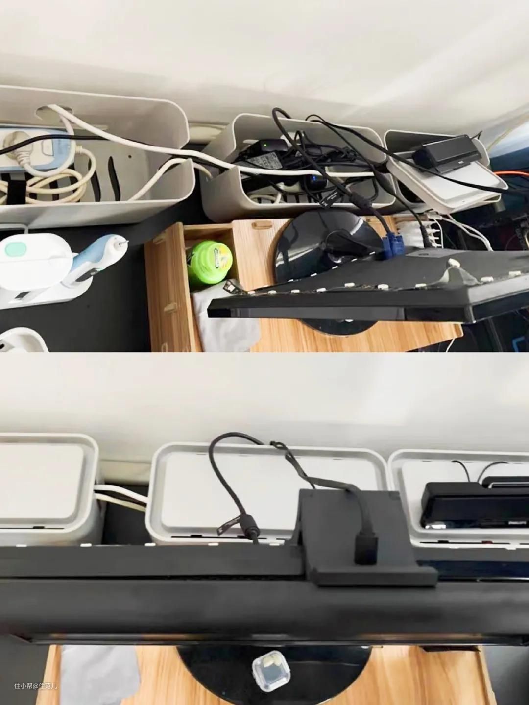 不花钱收纳看过来!只要你家的桌子或柜子带抽屉都适用,尤其电线集合多的床头和办公区。