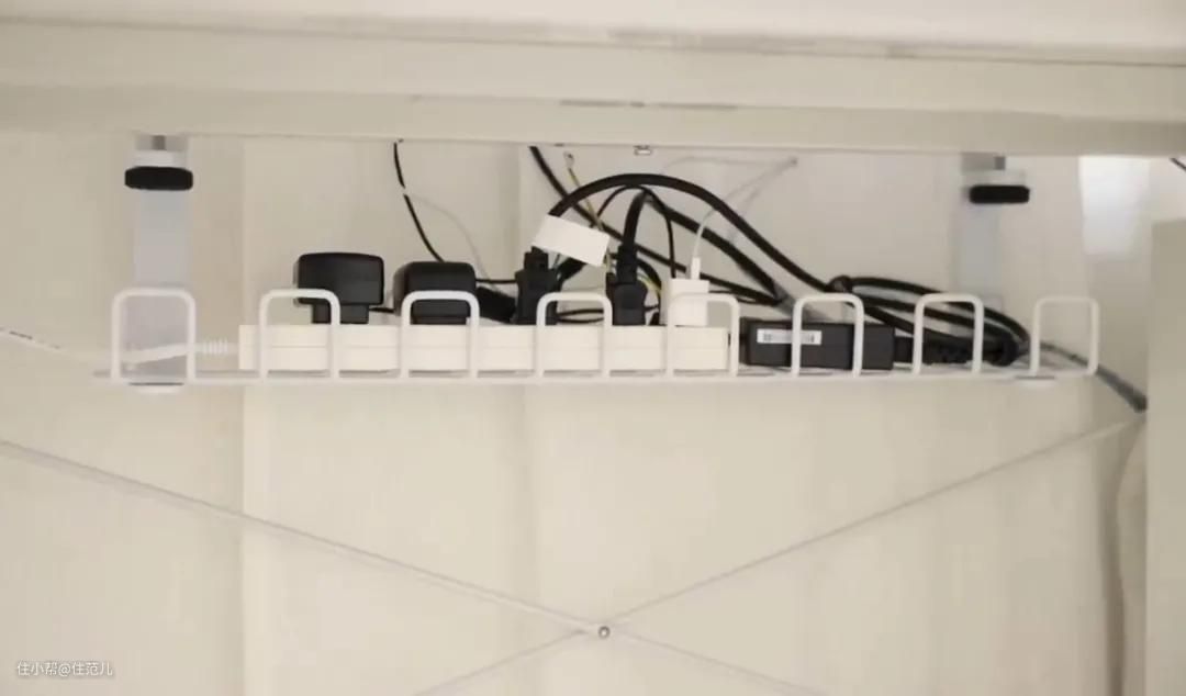 悬挂式电源收纳架能达到同样效果,尤其对桌面电源收纳超级实用,统统能藏到桌面下,脚底下绝对是你从没敢想过的一片清爽。