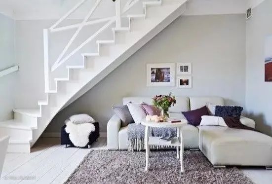 7、楼梯,在小复式的房子中,楼梯是必不可少的。好在楼梯的两侧安装扶手,这样可以保证楼梯的安全性和稳定性,以免家中有老人和孩子上下楼梯时发生意外。