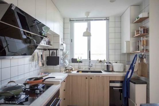厨房做好防水,地面铺设木地板也不用担心,跟室内空间整体结合。