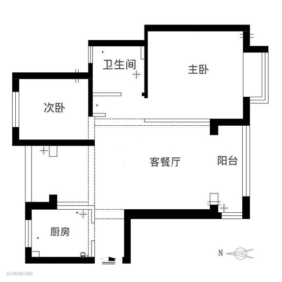 房屋户型: 两室一厅一厨一卫