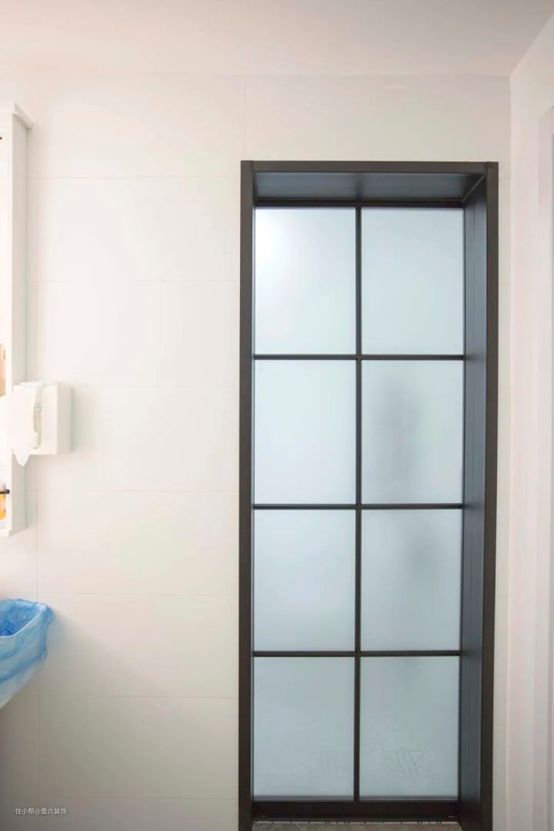 卫生间的门从原来的平开门,换成了铝镁合金玻璃推拉门,保证隐私的同时,透光度也很好。