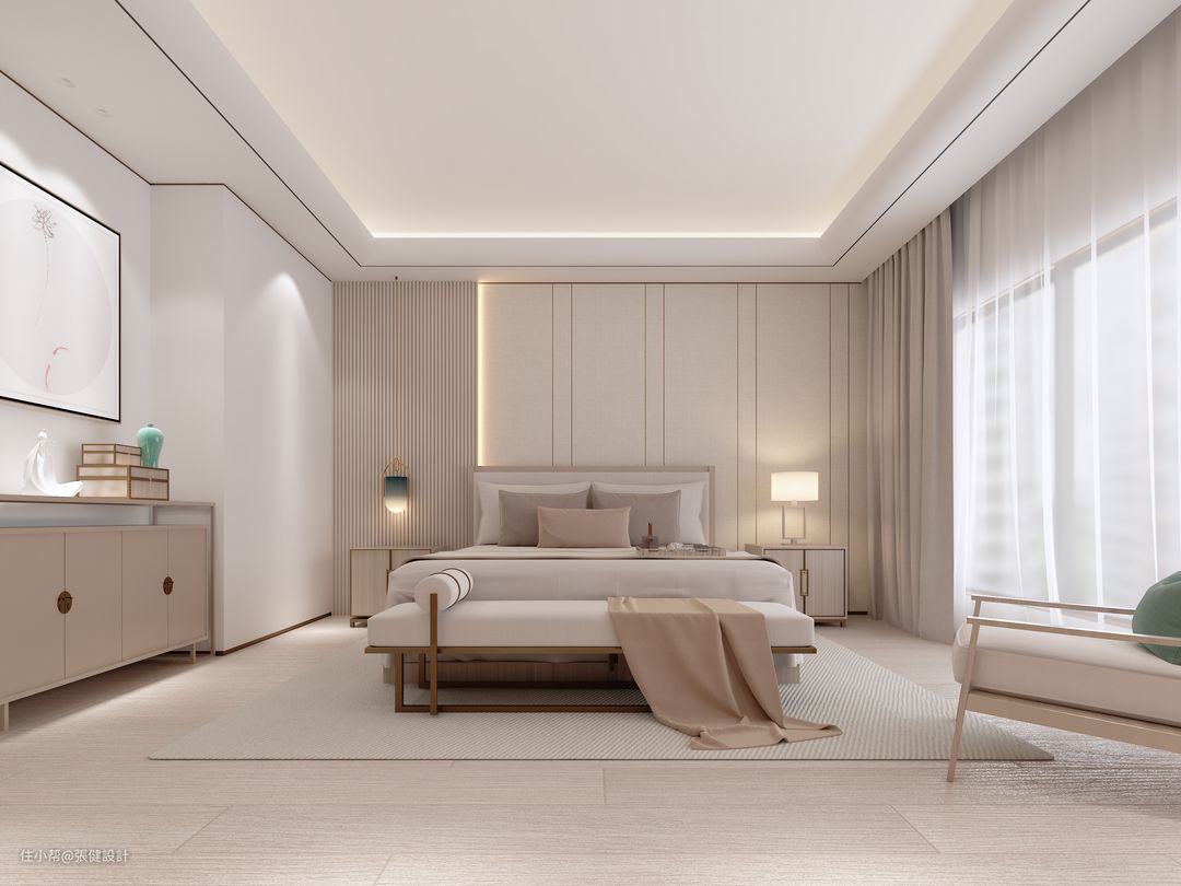 设计之初追求人居与大自然的结合,借由木元素等天然素材的自然特性和独特可塑性,构筑出一个怀幽思远、静水深流的宁静优雅居家禅意空间。