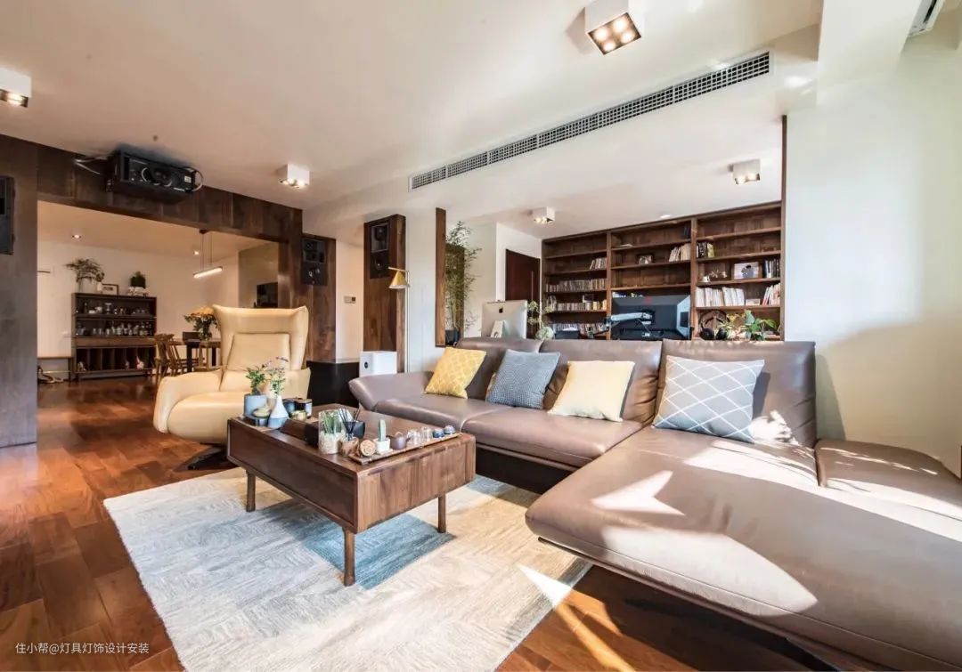 如果有独立的餐厅区域,那么横厅的基础再加个办公区,在沙发后面摆上办公桌,就能获得一个大客厅与宽敞的书房。