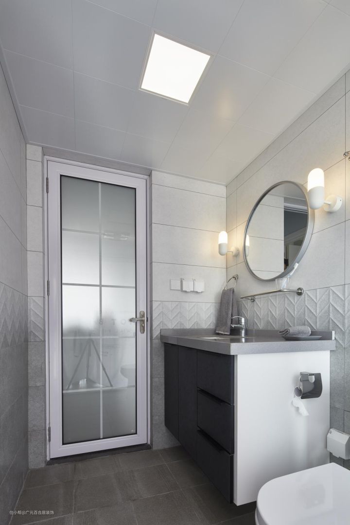 卫生间简约的浴室柜简单实用,简洁的吸顶灯散发着柔和的光线。