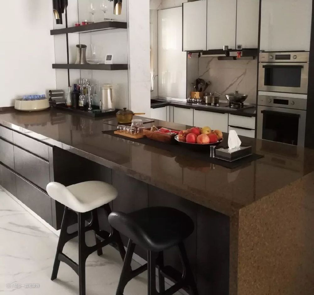 坐在吧椅上,就能享受到美味的食物,也能与家人一起品着红酒聊聊天,过着惬意自然的生活