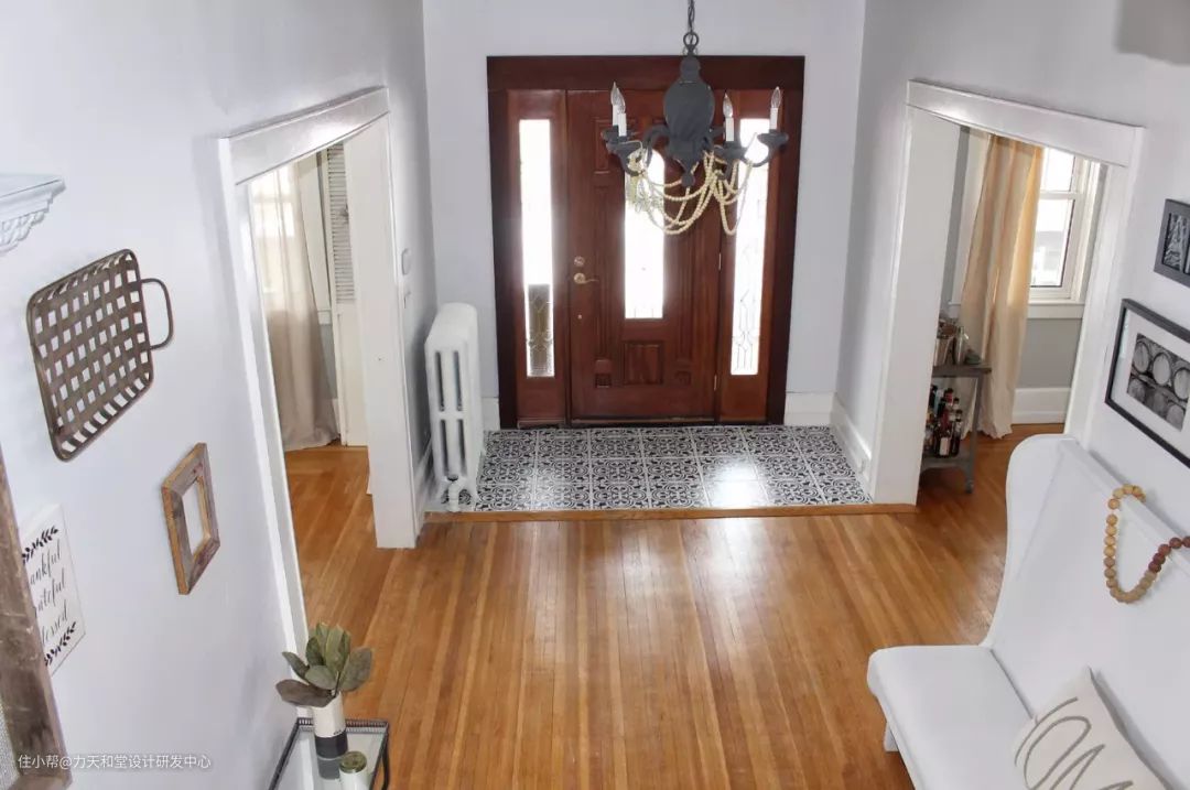 门厅和客厅空间用不一样的瓷砖铺贴,也能增加界限感。