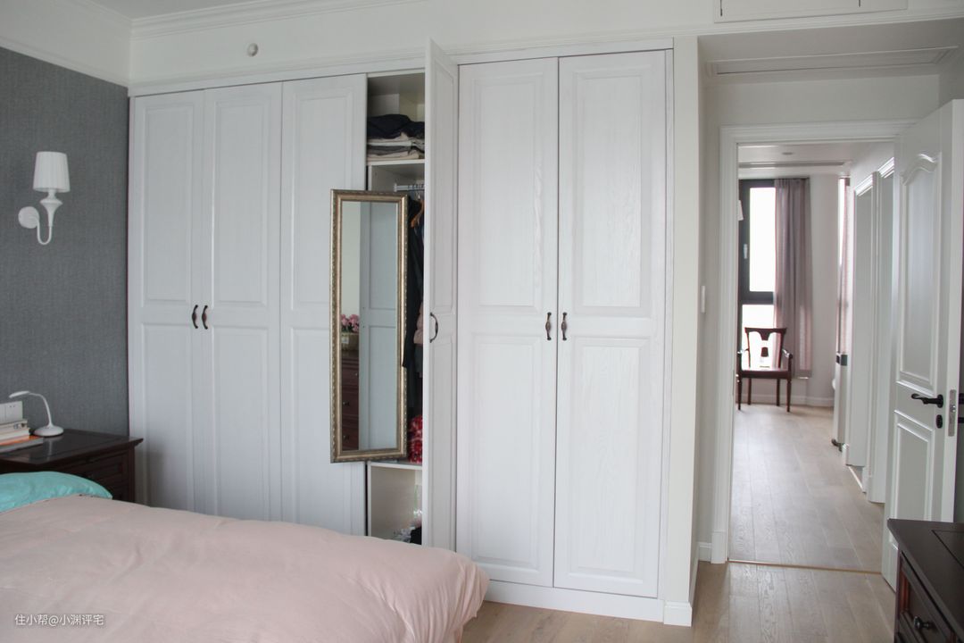 卧室里的定制衣柜,也可以藏一部分在吊顶里。这样的衣柜,与天花板之间的过渡会更和谐一点▼