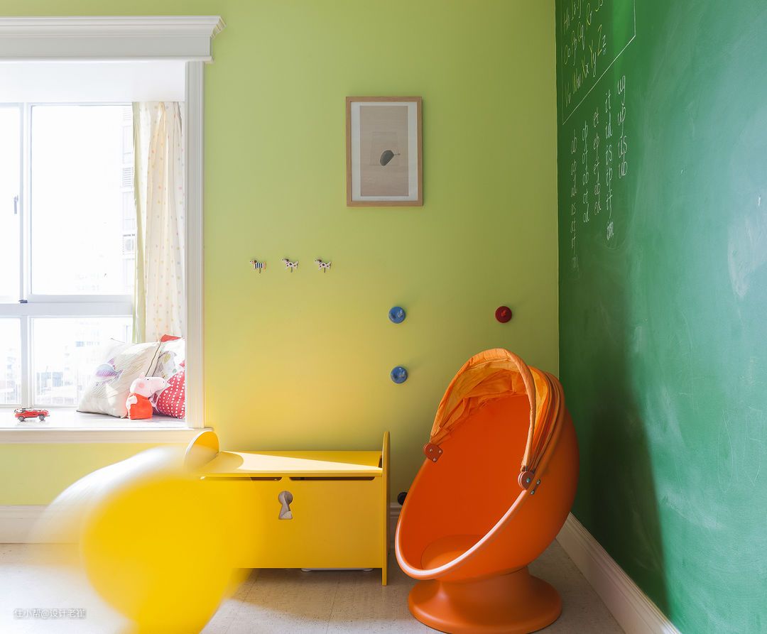 深绿色大大的黑板墙满足了小主人喜欢在墙上涂涂写写的乐趣。
